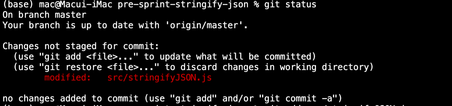 붉은색으로 modified: 파일명이 나온다. 내가 clone 해서 받은 파일에 수정했지만 아직 add와 commit이 되지 않은 것을 확인할 수 있다.