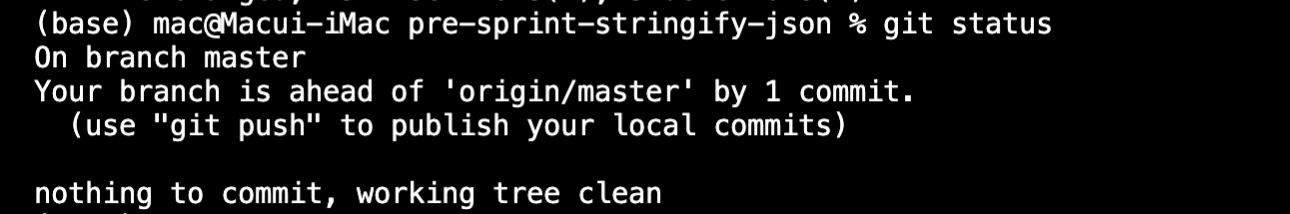 다음과 같이 나오면 git add와 git commit이 완료되었음을 알 수 있다.